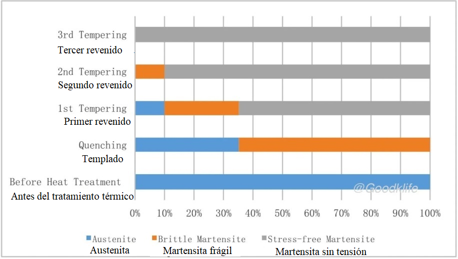 Solo un tratamiento térmico perfecto puede hacer que los compuestos de elementos metálicos relacionados transformen completamente su estructura metalográfica y desplieguen su rendimiento. La Figura 1 describe el proceso de transformación de la estructura metalográfica del compuesto metálico durante todo el tratamiento térmico de manera muy visual y detallada.
